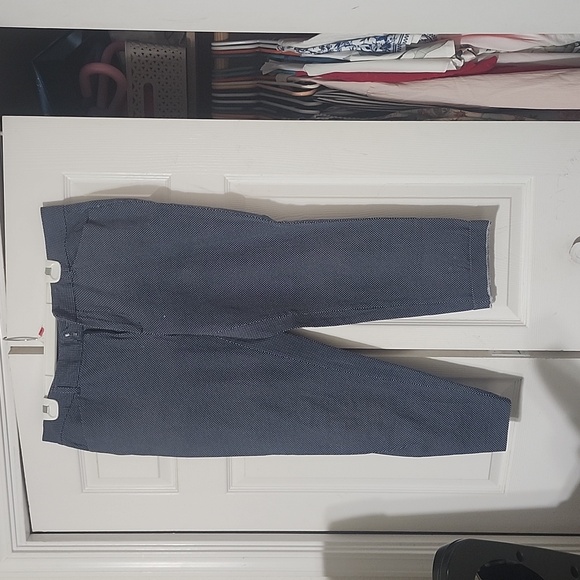 navy blue and white poka dots pants are navy and white dots 95 % cotton 5 % spandex