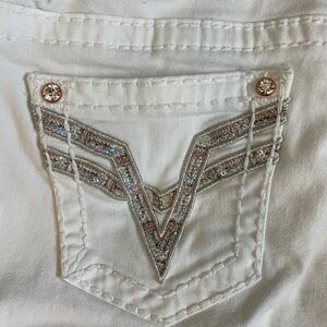 Women’s Vigoss white capris. Detailed gem design on back pockets. Size 3/4