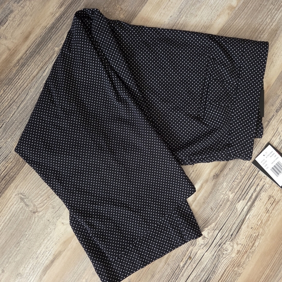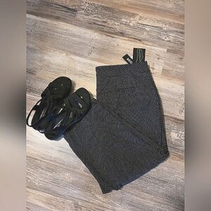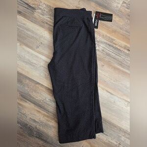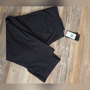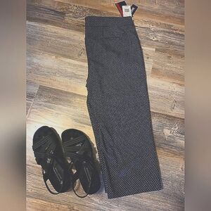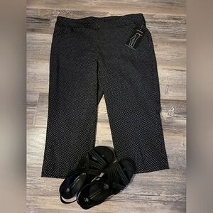Womans Comfort waist trouser like Capris Pants. Black with white polka dots Great for summer outings. Faux pockets. Very Sliming pants..76 Rayon..21 nylon..3% spandex Zoom In on these beauties..They have pretty white polka dots.