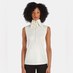 This versatile tee can be worn two different ways. Zip all the way up for a runway-ready look. Mid zip and the collar flaps over the back of your jacket for an amazing layered look with no bulk.