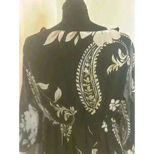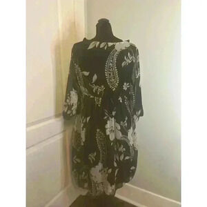 Capsule Women’s 10 Black Floral Empire Waist Knee Length Sheath Dress. Under slip. 26” length from neck to hem. 18 1/2” from pit to pit. Like new. Never worn. Purchased in Ireland.