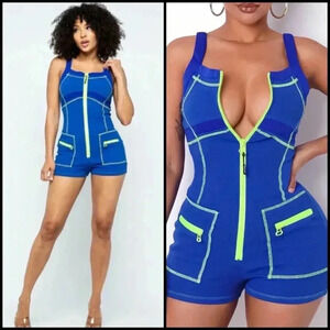 Capsulle Ribbed Neon Detail Short Romper Streetwear Loungewear Clubwear Size Small