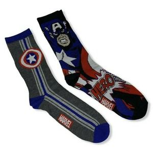 Captain America Men's Marvel Comics 2 Pack Crew Socks (Shoe Size 6-12)