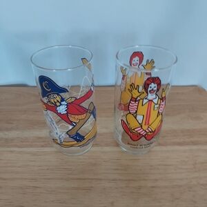 Set of two vintage glasses featuring Captain Crook and Ronald McDonald. Colorful and collectible. Grab a pair of these glasses today.