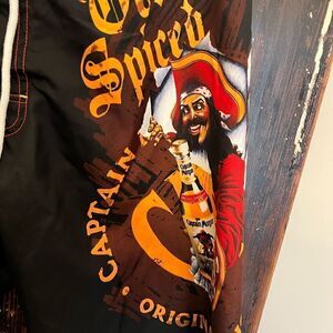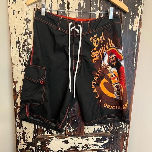Captain Morgan Swim Trunks Mens 30 Black Orange Graphic Print Board Shrots Cargo