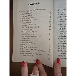The product is the book "Captain Underpants and the Preposterous Plight of the Purple Potty People" by Dav Pilkey, written in English. It has a total of 175 page paperback and touches on the meeting of themselves as evil twins .