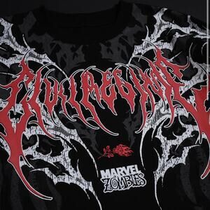 black, oversized, cartoon, zombie, vintage-inspired, heavy print, streetwear, unisex, collectible, remastered