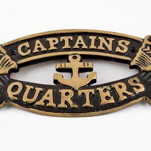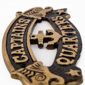 Captain's Quarters Door Plate Nautical Charm Plaque with Antique Brass Finish Maritime Wall Decor