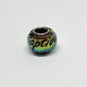 This bead charm offers a vibrant iridescent finish with engraved details, adding unique flair to any charm bracelet collection. Designed for lasting wear.