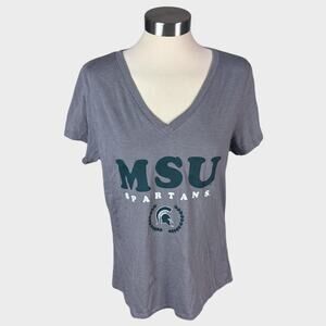 Captivating 3XL XL V Neck Short Sleeve MSU Michigan State Spartans Gray TShirt
