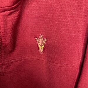 Captivating ASU 1/4 Zip Pullover Jacket Size Large Maroon Zipper Broke