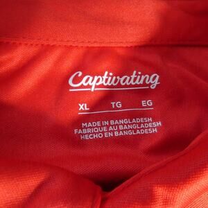 Red with white lettering. Three button collared polo with short sleeves. New with tags. Licensed university fan shirt.