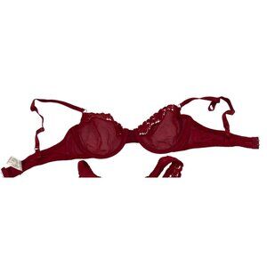 Capucine Red Lace French-Made Sheer Bra Size 34