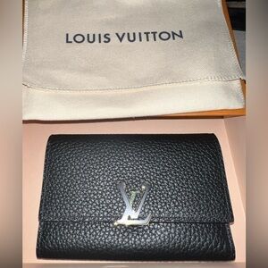 Crafted in supple Taurillon leather, the Capucines Compact Wallet has many functionalities and a large capacity to fit every day essentials. The ingenious and original structure of this elegant pocket-sized wallet made of 2 fold-over flaps gives you ample space for credit cards, coins and bills.