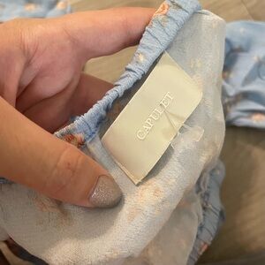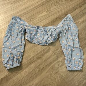 Blue with a orange floral pattern. Super cropped. Peasant bell sleeve style Size small