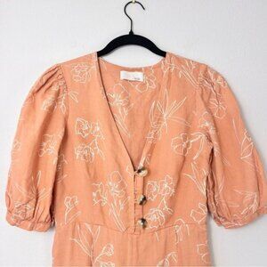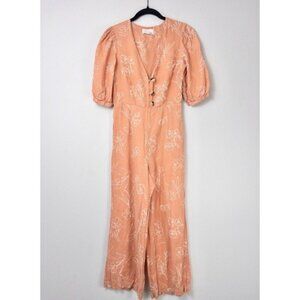 Capulet Isalina Linen Cropped Jumpsuit S Oleander Floral Puff Sleeve Wide Leg
