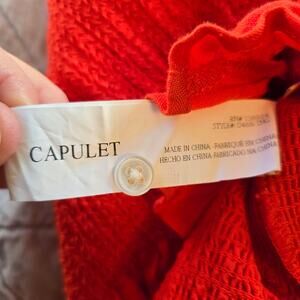 Linen blend. Hand wash cold. Unlined. Smocked throughout. Ruffle trim. Elasticized arm openings. Neckline to hem measures approx 31.5" in length. Revolve Style No. CAPU-WD145
