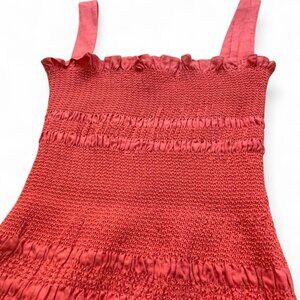 Capulet Smocked Ruffle Mini Dress in Coral – Romantic Summer Sundress (Size S)