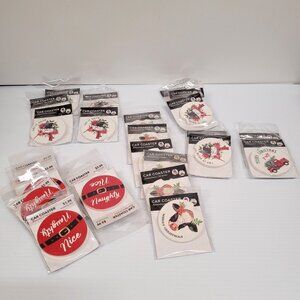Lot of 24 New in package Car coasters absorbent ceramic. Christmas Holiday designs. Most of the coasters measure 3'' x 3''. The red nice/naughty measure 2.65'' x 2.65''. New from Hobby Lobby.