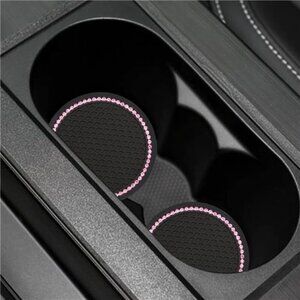 Car Cup Coaster Pink Black Bling Vehicle 2 Pack Rhinestone Universal Insert