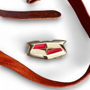 Everything you need to know is in the photos! Colors are enamel. Not a vintage piece but definitely vintage flare! Dont think its a real logo for any maker, but i could be wrong! Feel free to ask random questions. Pretty firm on the price.