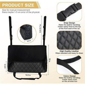 🧿【Easy to Install】The installation of this purse holder for car is very simple, no drilling or stickers are needed. It takes less than one minute to fix the seat with two adjustable buckles and one elastic velcro to cover the console armrest box.It can be adjusted to the suitable distance based on different spaces between the driver and the passenger seats of various car models.