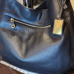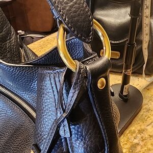 This Car Shoe Vitello Daino shoulder bag is a stylish and practical accessory for everyday use. The black pebbled leather exterior is complemented by gold hardware and a chic snap closure. The bag features a large compartment that can fit all your essentials, while the handle drop of 9 inches and bag height of 14 inches provide a comfortable carrying experience.