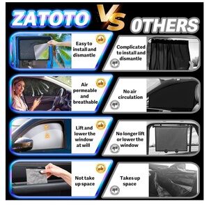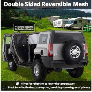 Blocks direct sunlight, provides privacy for side windows