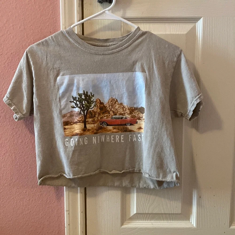 Worn only 3 times and is trimmed at the bottom as shown. Very comfy and when worn belly is show a little bit!