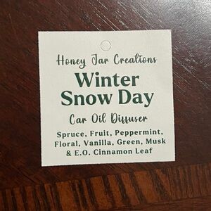 Limited Edition Holiday Car Diffuser – Winter Snowday Capture the crisp, joyful spirit of the season with the Limited Edition Winter Snowday Car Diffuser. Inspired by the magic of freshly fallen snow and cozy winter mornings, this diffuser brings a refreshing, clean scent to every drive. The fragrance blends cool peppermint, soft vanilla, and hints of frosted pine—evoking the feeling of stepping outside into a peaceful winter wonderland. The clear glass bottle and natural wooden cap add a touch of minimalist charm, while the adjustable fragrance intensity ensures a perfectly balanced aroma that lasts for weeks.
