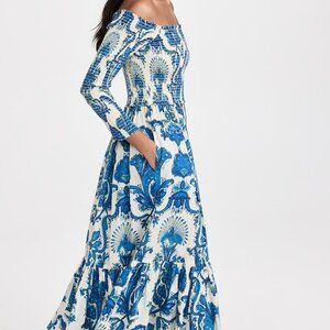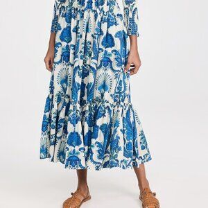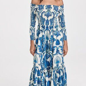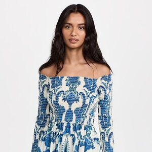 Cara Cara Blue Midi Dress Skylar Smocked Off The Shoulder Dress Floral XS