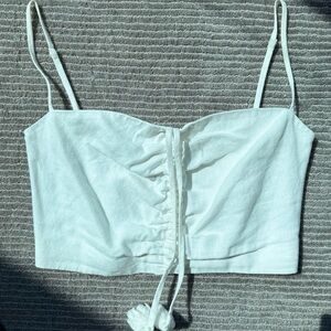 Cara Cara Cream Ruched Tie Front Crop Top
