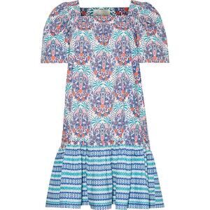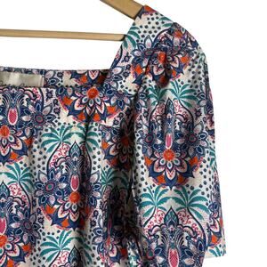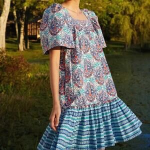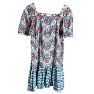 Cara Cara Janie Palm Medallion Puff Sleeve Square Neck Drop Waist Ruffle Dress XL