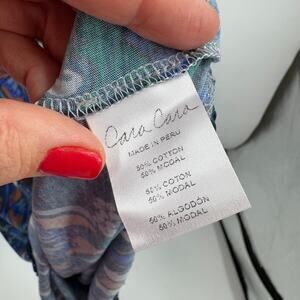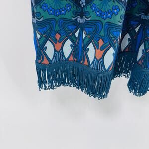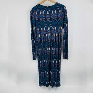Cara Cara Liza Long Sleeve Printed Midi Fringe Hem Dress Blue Green Size M