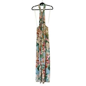 Cara Cara Marion Dress Twisted Open-Back Floral Halter Silk Chiffon Maxi Size XL