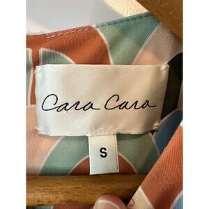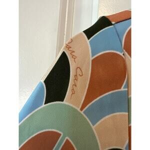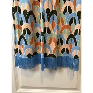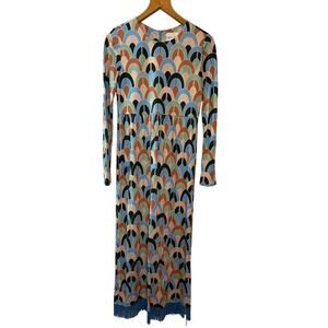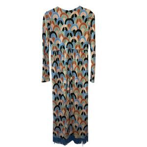 Cara Cara Multicolor Geometric Print Midi Dress with Blue Fringe Hem Size Small