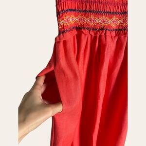 Cara Cara NYC Jenny Hibiscus Linen Smocked Tie Shoulder Midi Dress Size S
