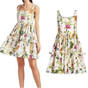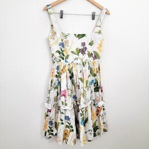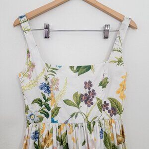 A flirty apron fit-and-flare patterned in a crisp floral print throughout.