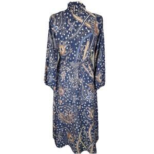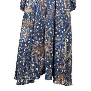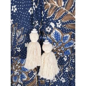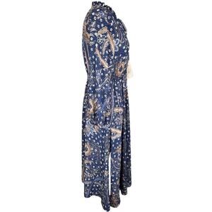 Cara Cara Tanglewood Dress Batik Navy Blue Midi Cinch Waist Long Sleeve Boho S