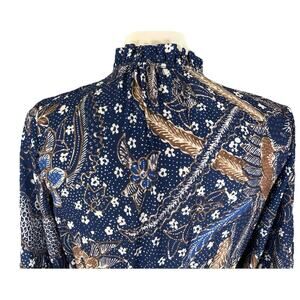 Cara Cara Tanglewood Dress Batik Navy Blue Midi Cinch Waist Long Sleeve Boho Small