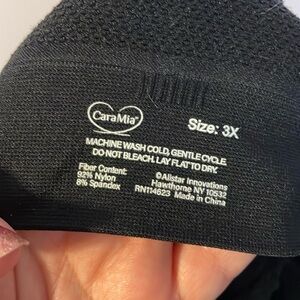 Cara Mia Black Lace Cross Front Pull On Bra Bralette size 3X. Good preowned condition. Minor wear to lace edging. Cute style with little padding. Adjustable lace cross over panels in front. Adjustable straps. Stretchy.