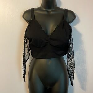 Cara Mia Black Lace Cross Front Pull On Bra Bralette size 3X