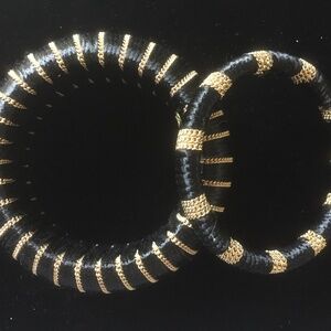 Cara NY Set of 2 Black Ribbon & Gold Chain Bangle Bracelets/1 1/2" & 3/8" Wide