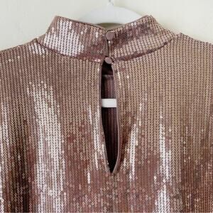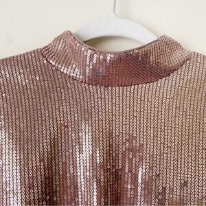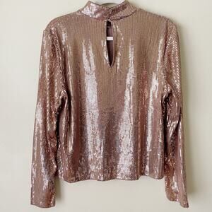 Cara Santana x Nine West | Sequin Mock Neck Long Sleeve Blouse Metallic XL