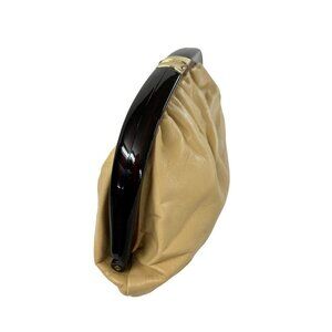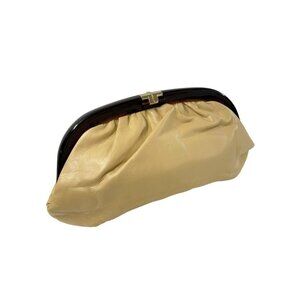 Cara USA Vintage Clutch Handbag Beige Leather Retro Pleated 12"l x 7"h
