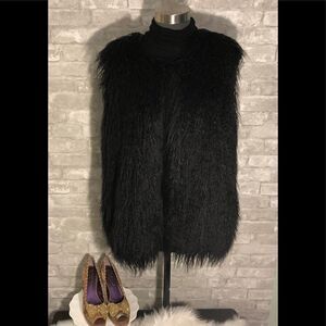 EUC Black Faux Shearling Vest Size M-L by Cara of NY