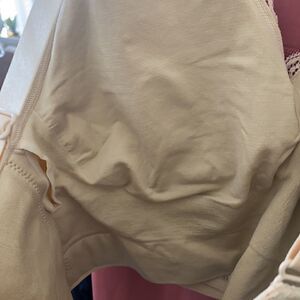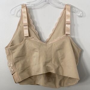 Tan full supportive bra with lace accents and front hook closure. In EUC no underwire.