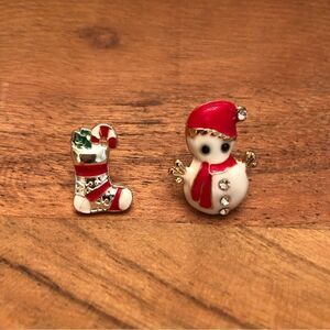 Enamel Snowman and Stocking Earrings with Crystal Accents.