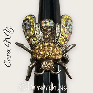 This listing presents a delightful vintage Bumblebee stretch ring by Cara NY, adorned with sparkling rhinestones. This ring exudes an undeniable charm and is truly adorable.