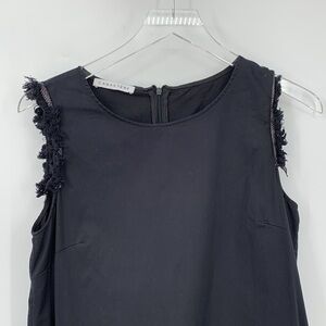 Caractere Abito shift sheath dress black fringe trim stretch cotton sleeveless 6